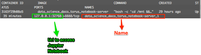 • Get the port on which Torus is running to access Jupyter Notebooks and get the name of the container.